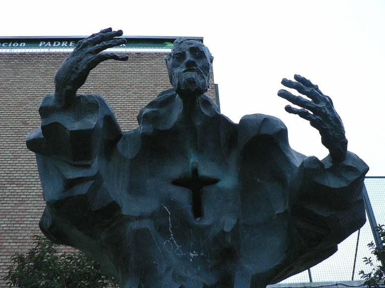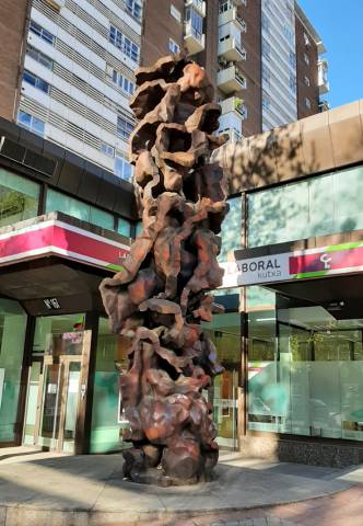 Hasta aquí la ruta escultórica de la vertiente oriental tetuanera. Al otro lado, el número de obras es sensiblemente menor, no así la relevancia de los artistas, como es el caso de Pablo Serrano. El que fuera vecino del distrito –y al que este homenajeó dando su nombre a una de sus salas de exposiciones– está considerado como uno de los escultores españoles más importantes del siglo XX, y dejó su firma en plena Almenara con un bronce expresionista de San Francisco Javier, junto a la parroquia homónima de Mártires de la Ventilla. En él, el misionero jesuita surge de la materia geometrizada, de forma similar a la obra que Serrano dedicó a Indalecio Prieto en los Nuevos Ministerios.