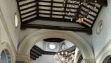 Las cubiertas y la bóveda de madera aportan la nota castiza de un sencillo artesonado de inspiración mudéjar, y cuenta con un ábside decorado con frescos de escenas de la Virgen, de autor desconocido. En el proyecto original figuraba además un esbelto campanario en el extremo del crucero izquierdo, que no llegó a realizarse.