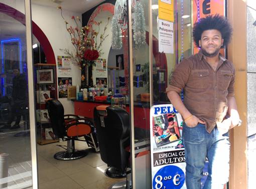 Mientras acicala a un cliente en su peluquería latina de la calle de Topete (“hay un estilo latino”, asegura), donde ahora el cuarto corte de pelo es gratis y, sorprendentemente, no suena una bachata, sino un canal de documentales de fondo, recuerda cuando hace siete años llegó directamente a esta zona de Tetuán, conocida como el “pequeño Caribe”, sin haber cogido unas tijeras en su vida y sin un euro. “Al principio estuve unos días tirado en la calle, hasta que encontré esta peluquería. Venía aquí a pasar el rato y me fijaba en cómo lo hacían. A los tres meses, el negocio ya era mío”. Ahora enseña al mayor de sus hijos, de 18 años, para en unos meses asegurarle el trabajo. Desde que aterrizó en Madrid, el empuje de Mejía lo ha llevado a convertirse en un empresario con varios proyectos a su cargo: “Al llegar no tenía contactos en la música”. Y todo, además de para mantener a sus cinco hijos, para financiar su gran sueño.