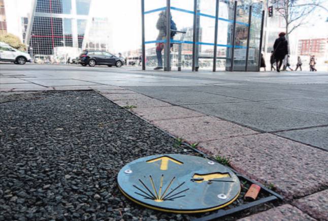 En uno de los alcorques de Bravo Murillo, a un paso de los Juzgados de Plaza de Castilla, una placa con una concha de vieira marca la primera etapa del Camino de Santiago de Madrid o Ruta Jacobea Madrileña. Éste es para muchos el punto de inicio de la Ruta, aunque algunos consideran que comienza en la parroquia de Santiago y San Juan Bautista, en Ópera, o en la Iglesia de Santiago el Mayor, en la Plaza de las Comendadoras. Desde allí los peregrinos deben ir hacia el norte –cerca de la Glorieta de Quevedo también puede verse otra de estas conchas–, por San Bernardo y Bravo Murillo, hasta llegar a la Plaza Castilla. Un poco más adelante, ya en La Castellana, también se puede apreciar varias flechas en farolas y bolardos, además de un cartel en la entrada principal del intercambiador, que indica la distancia a Santiago: 669 kilómetros.