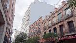 Al fondo de la fotografía aparece el edificio Titanic de la glorieta y, a la derecha, aún perduran dos de los inmuebles –inconfundibles los remates de la fachada del más próximo– cerca ya de Cuatro Caminos. En ausencia de los árboles actuales, la vía parece más ancha y tranquila, muy diferente de la trampa circulatoria en la que se ha convertido en la actualidad. Foto: Martín Santos Yubero (Archivo Regional de Madrid)