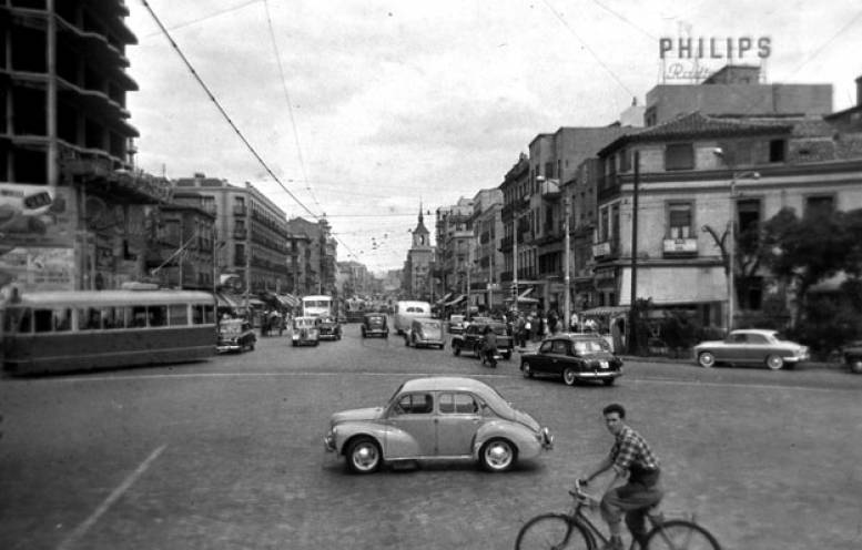 A finales de los 50 Cuatro Caminos afrontaba pues su enésima transformación, ya visible en luminosos como el de Philips o en la abundancia de vehículos que contrastaban con los cables cruzados del tranvía, pero en la que aún los curiosos ciclistas no se resistían a ralentizar su marcha para sonreír al fotógrafo.