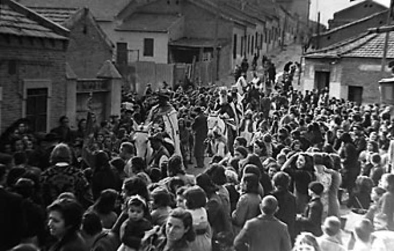 Nada menos que siete décadas hace de esta serie de fotografías tomadas en La Ventilla por el cronista gráfico Martín Santos Yubero. En ellas, sus Majestades de Oriente recorren a caballo la populosa barriada de Tetuán, repleta de niños y grandes, y donde no falta la Autoridad con su gorra de plato, ni el señor cura de riguroso negro. También abundan los pajes uniformados, y un Baltasar cumpliendo la cuota étnica, aunque fuera a base de betún.